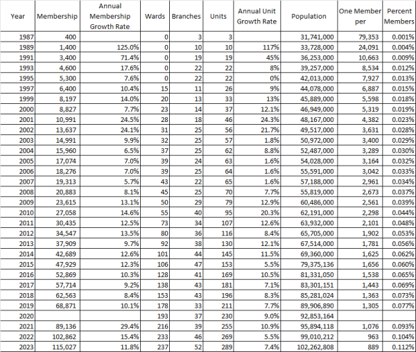 Average Number of Members per Ward or Branch