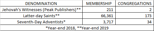 Membership and Congregational Growth Table