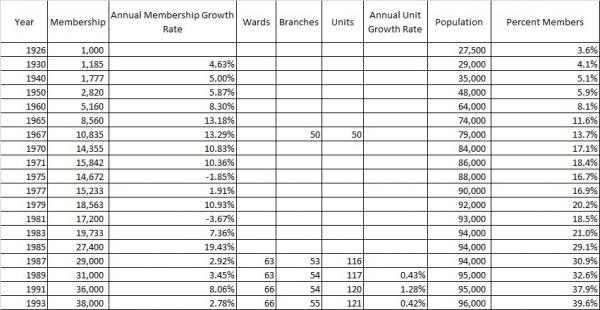 Average Number of Members per Ward or Branch